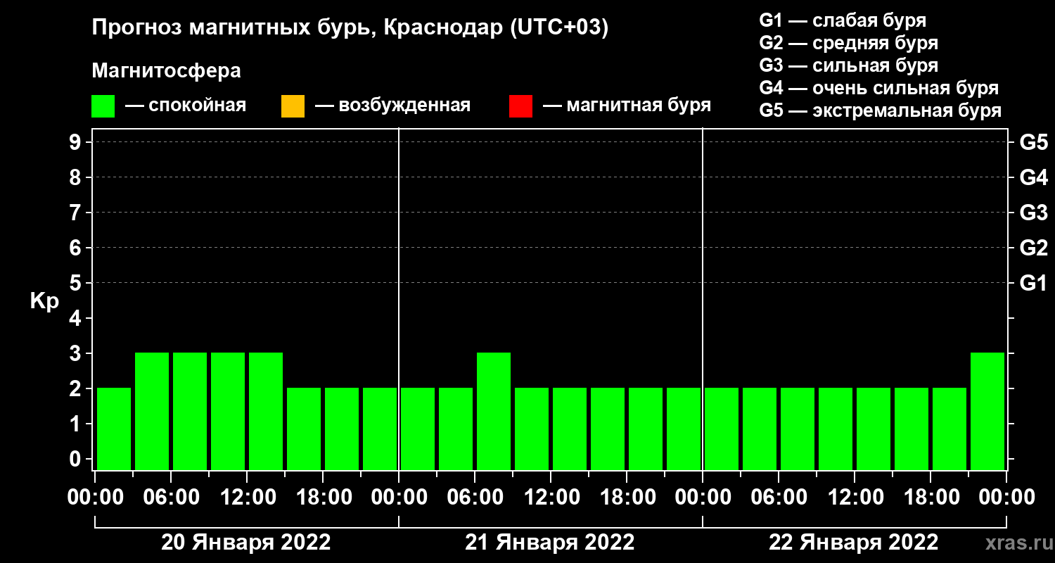 Прогноз магнитных бурь в Краснодаре на 20 января 2022 года