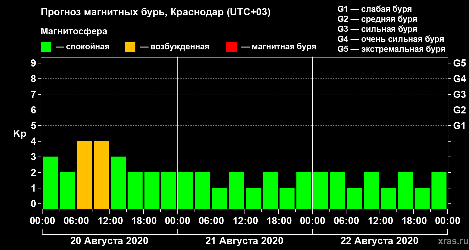Прогноз магнитных бурь в Краснодаре на 20 августа 2020 года