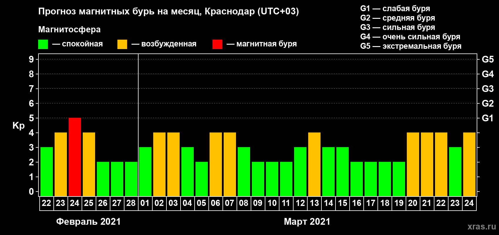 Прогноз магнитных бурь в Краснодаре на 22 февраля 2021 года
