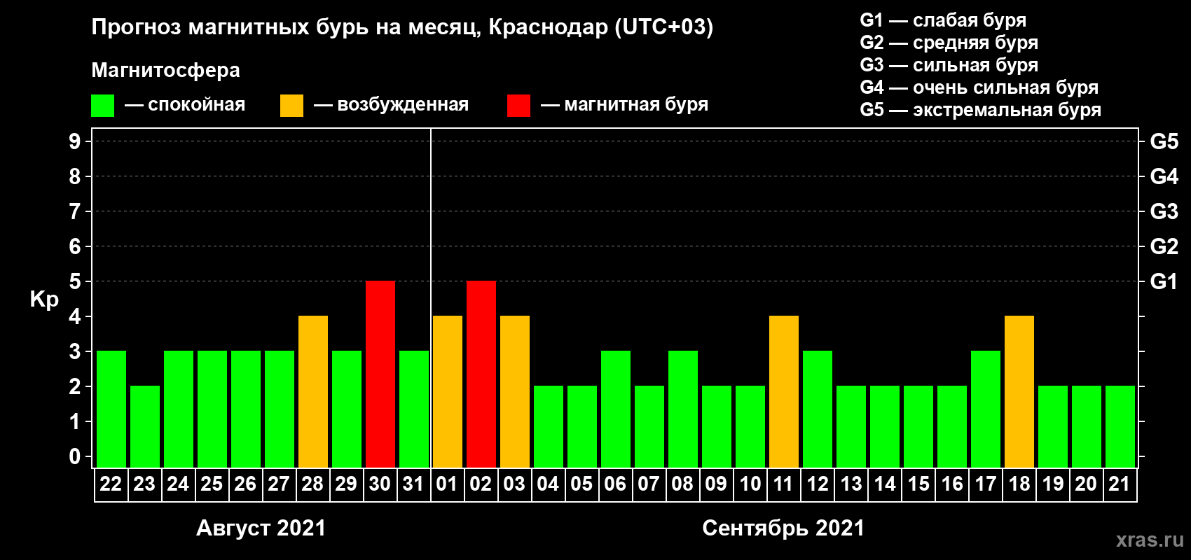 Прогноз магнитных бурь в Краснодаре — 22 августа 2021 года