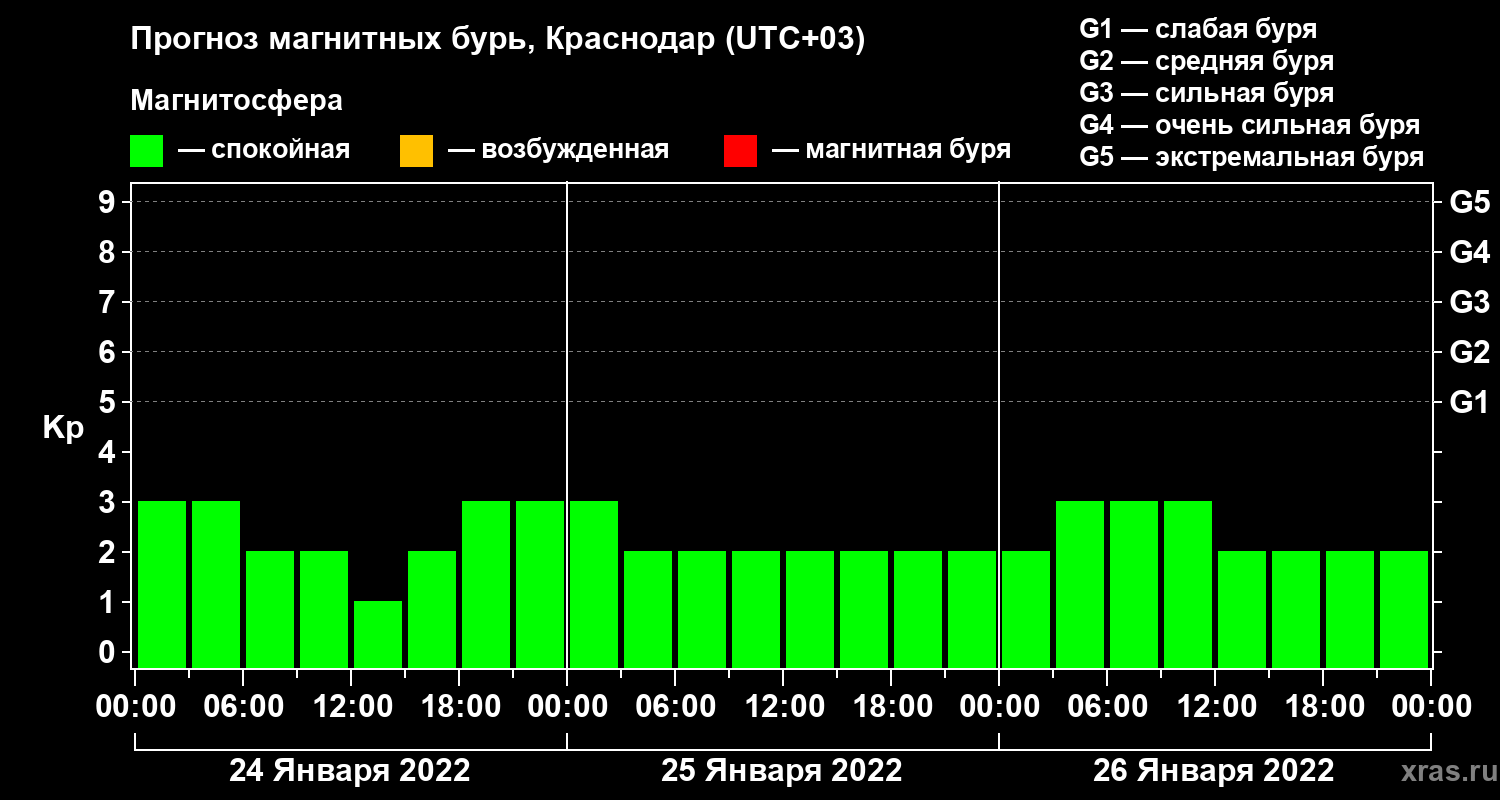 Прогноз магнитных бурь в Краснодаре на 24 января 2022 года