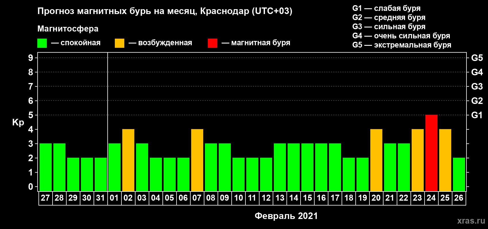 Прогноз магнитных бурь в Краснодаре — 27 января 2021 года