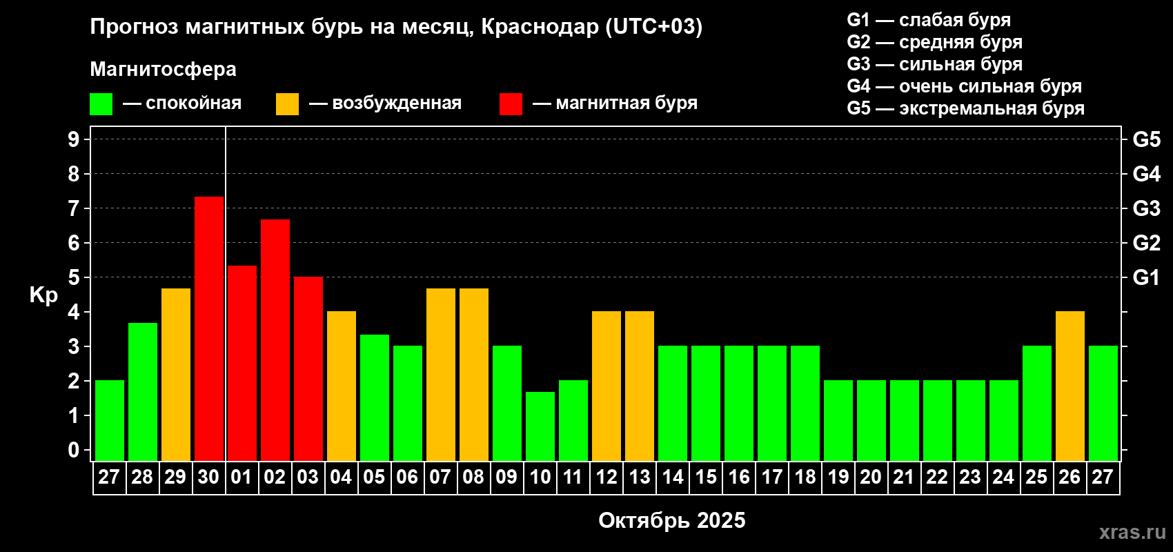 Прогноз магнитных бурь в Краснодаре — 27 сентября 2025 года
