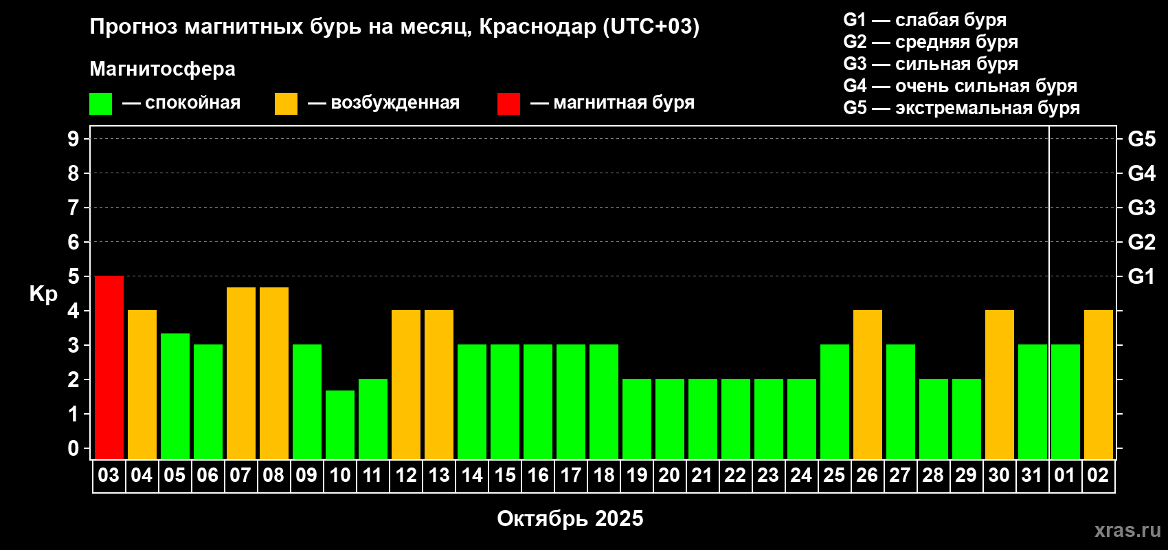 Прогноз магнитных бурь в Краснодаре — 3 октября 2025 года