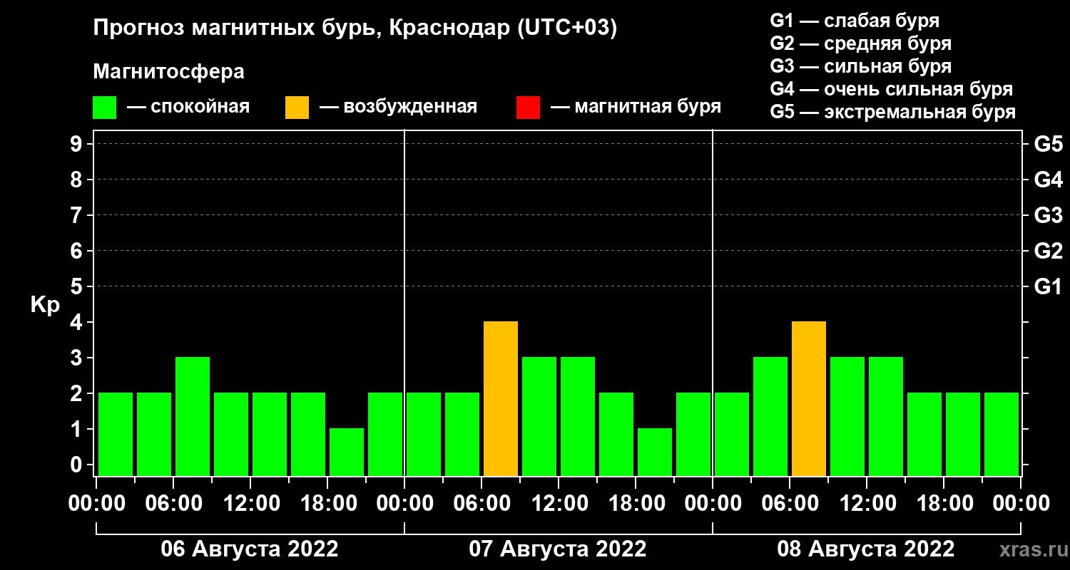 Прогноз магнитных бурь в Краснодаре — 6 августа 2022 года