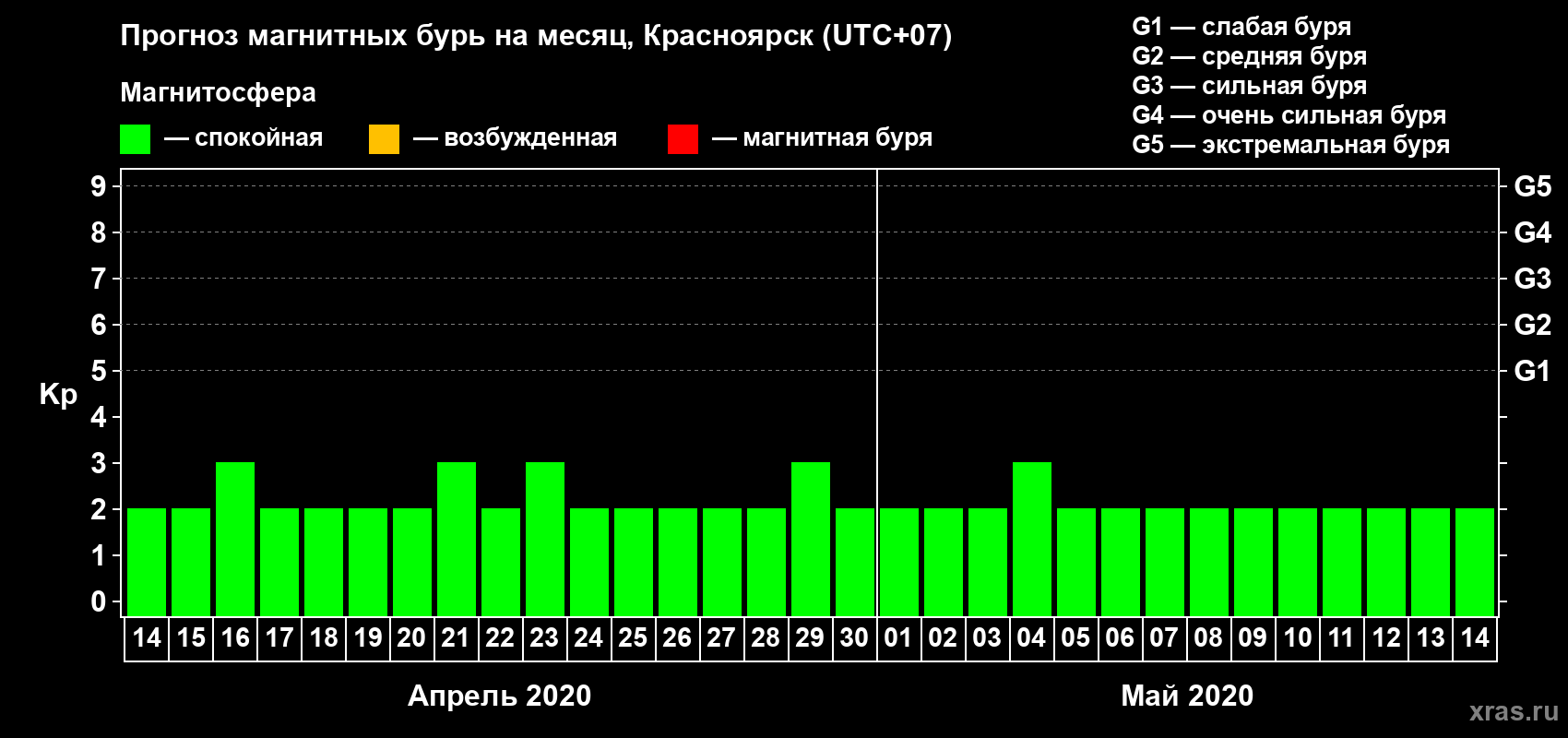 Прогноз магнитных бурь в Красноярске — 14 апреля 2020 года