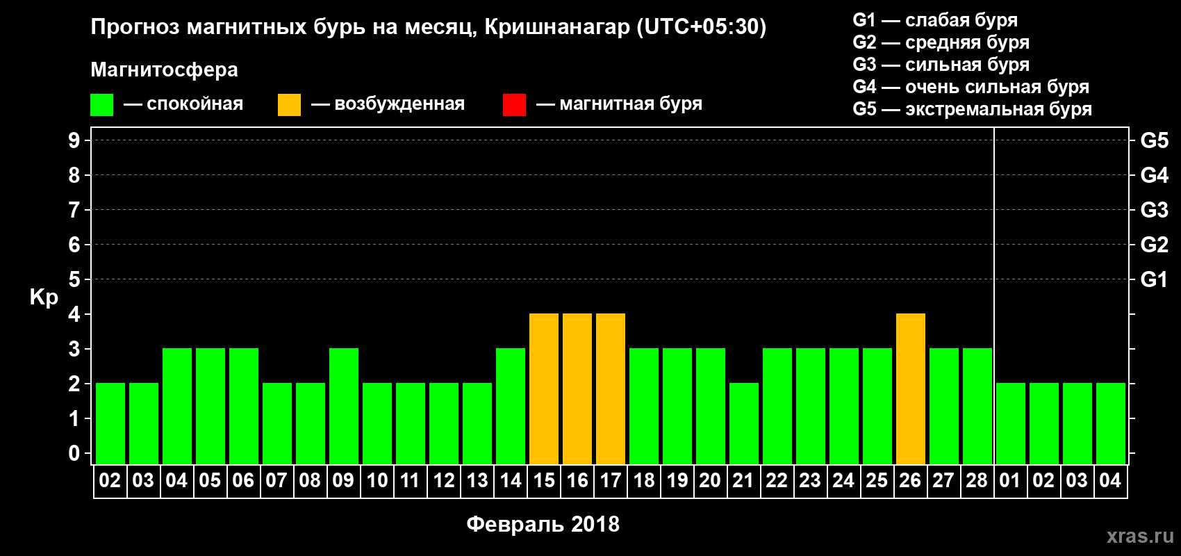 Прогноз магнитных бурь в Кришнанагаре — 2 февраля 2018 года