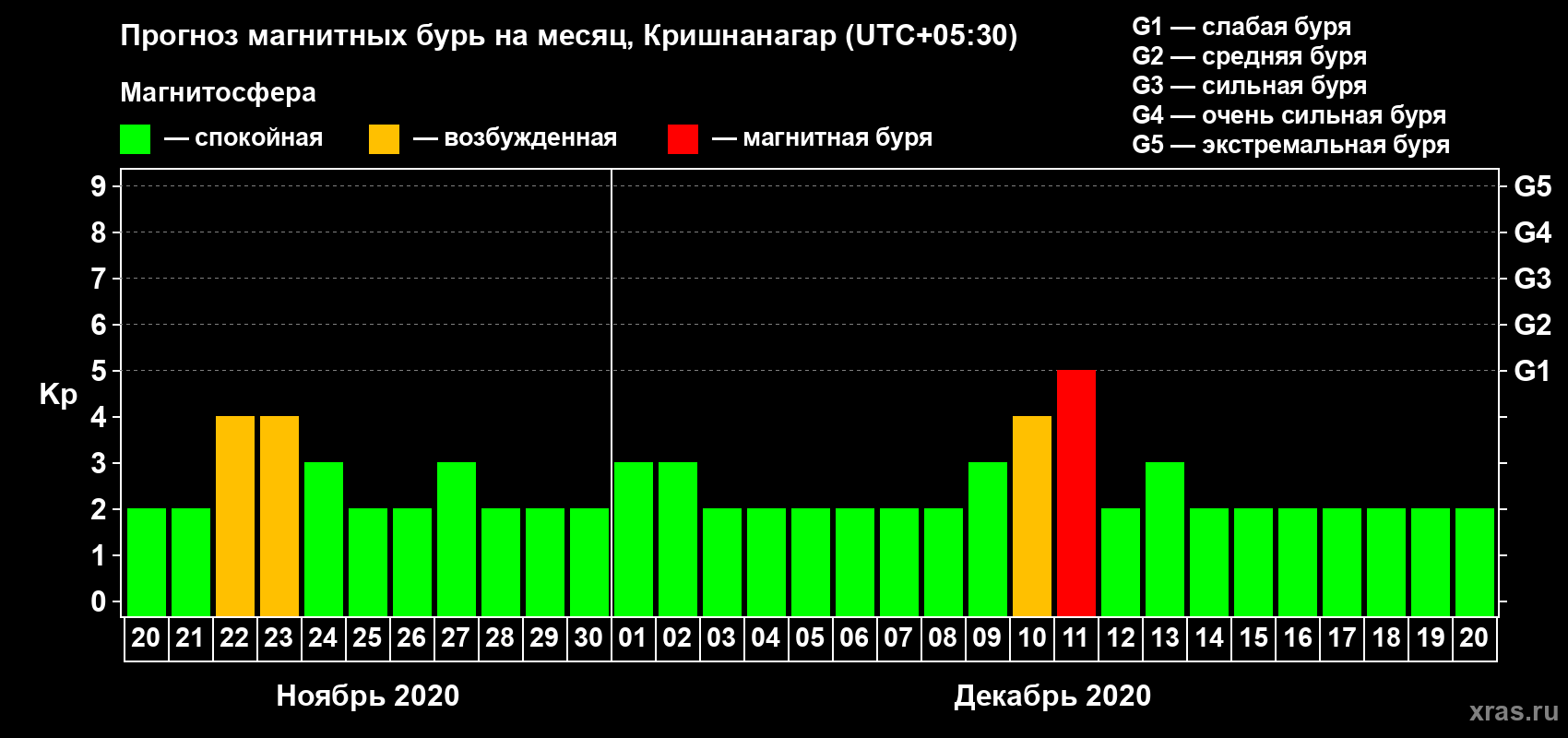 Прогноз магнитных бурь в Кришнанагаре — 20 ноября 2020 года