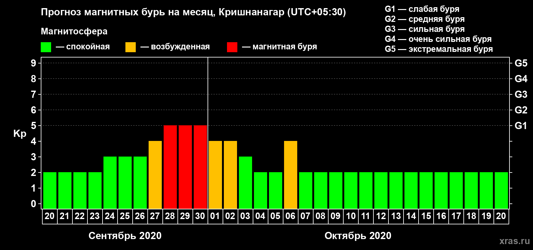 Прогноз магнитных бурь в Кришнанагаре — 20 сентября 2020 года