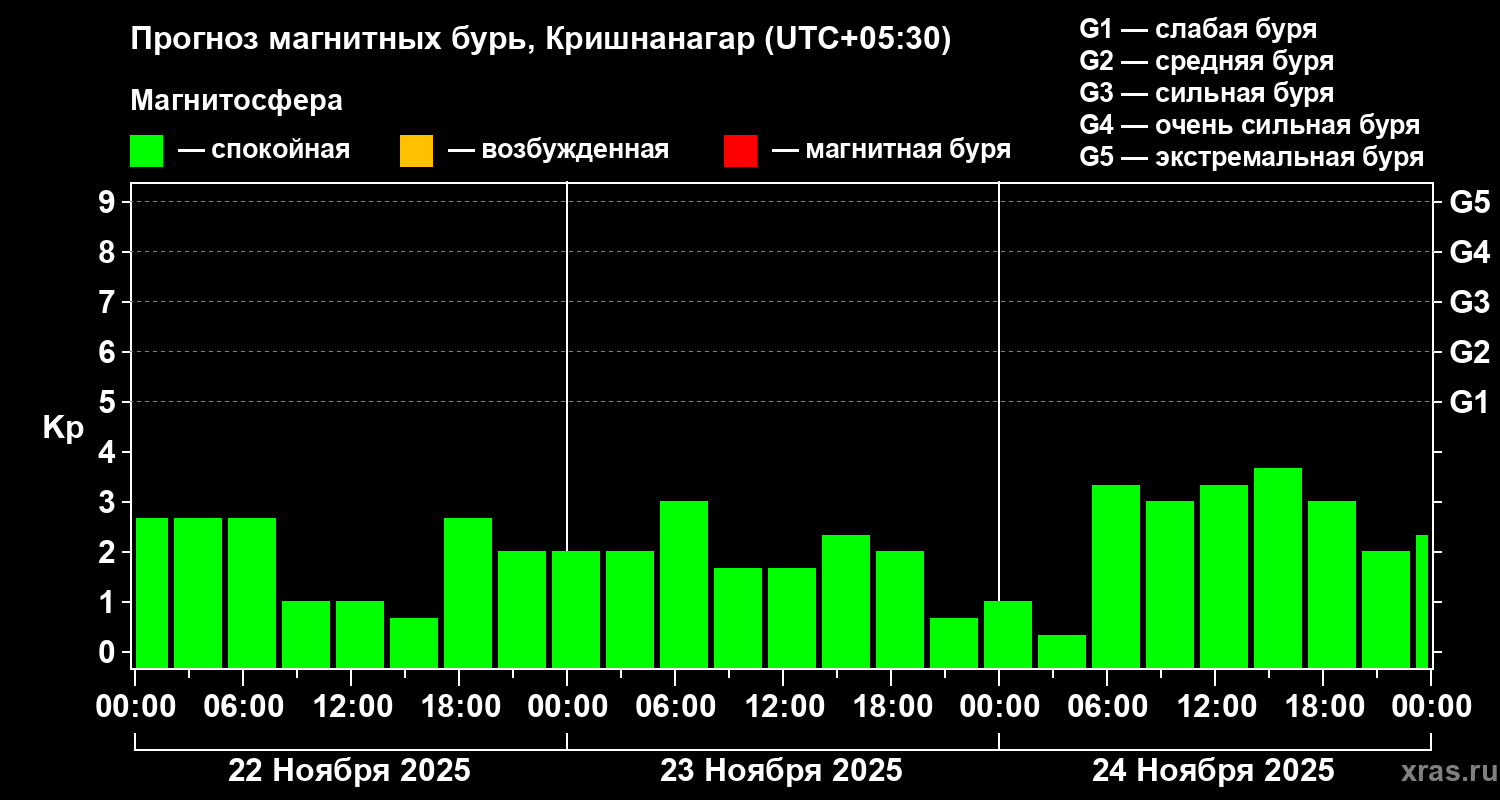 Прогноз магнитных бурь в Кришнанагаре — 22 ноября 2025 года