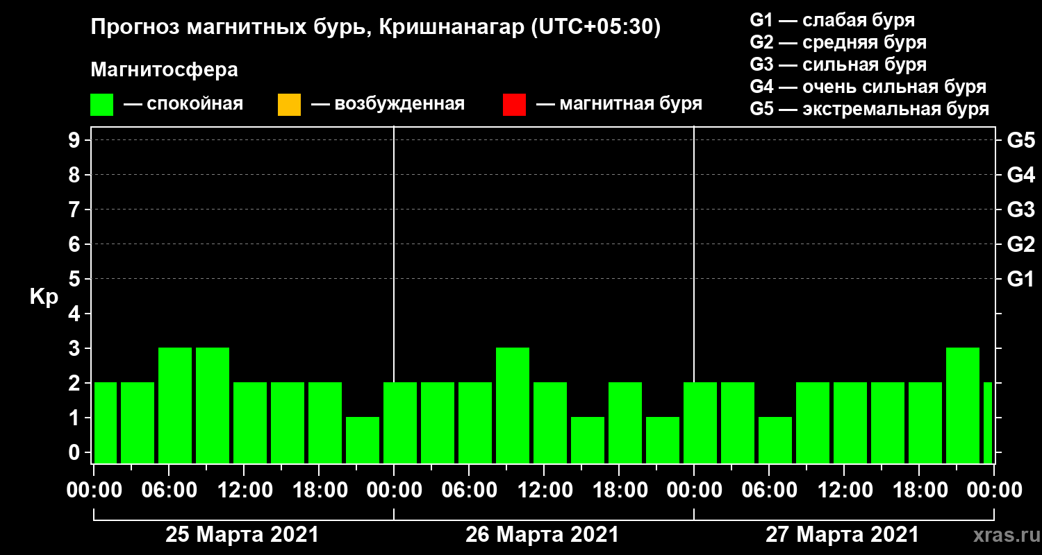 Прогноз магнитных бурь в Кришнанагаре — 25 марта 2021 года