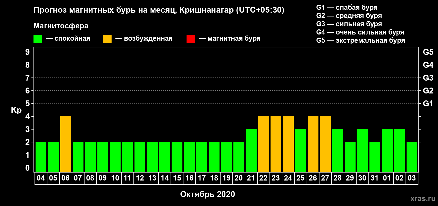 Прогноз магнитных бурь в Кришнанагаре — 4 октября 2020 года