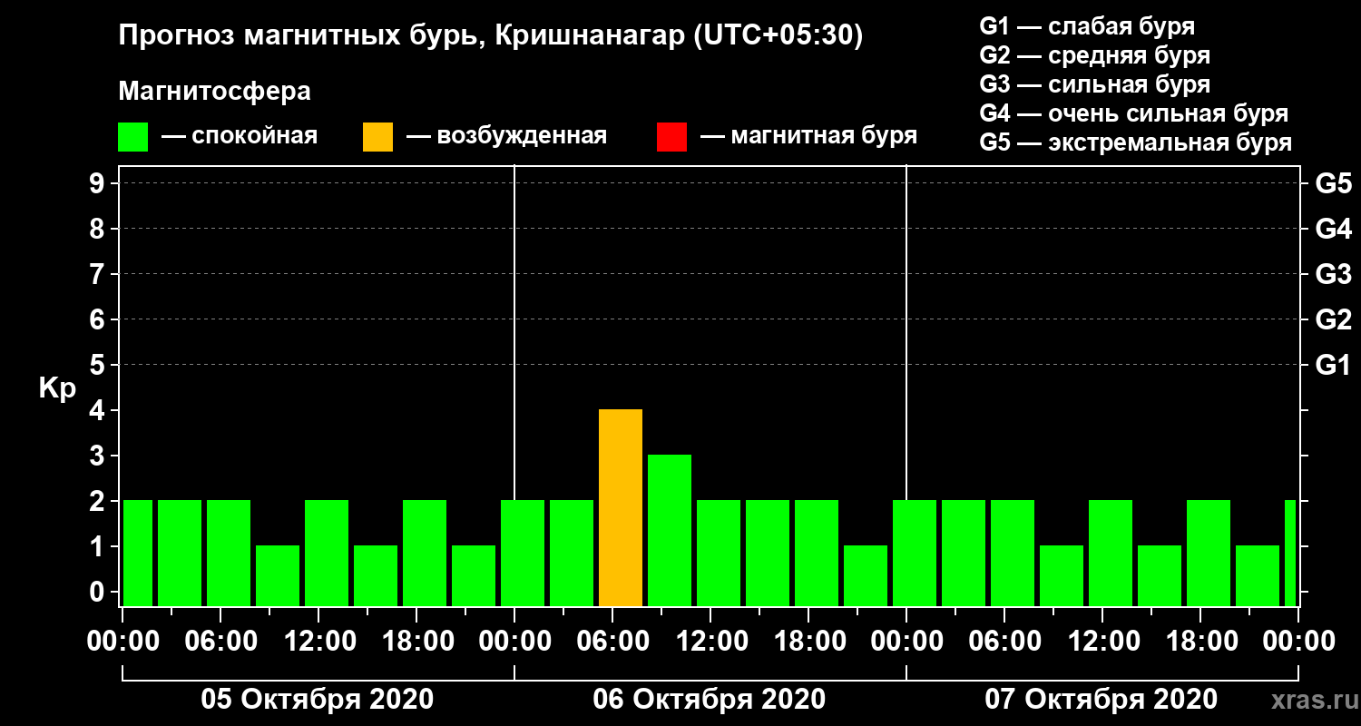 Прогноз магнитных бурь в Кришнанагаре — 5 октября 2020 года