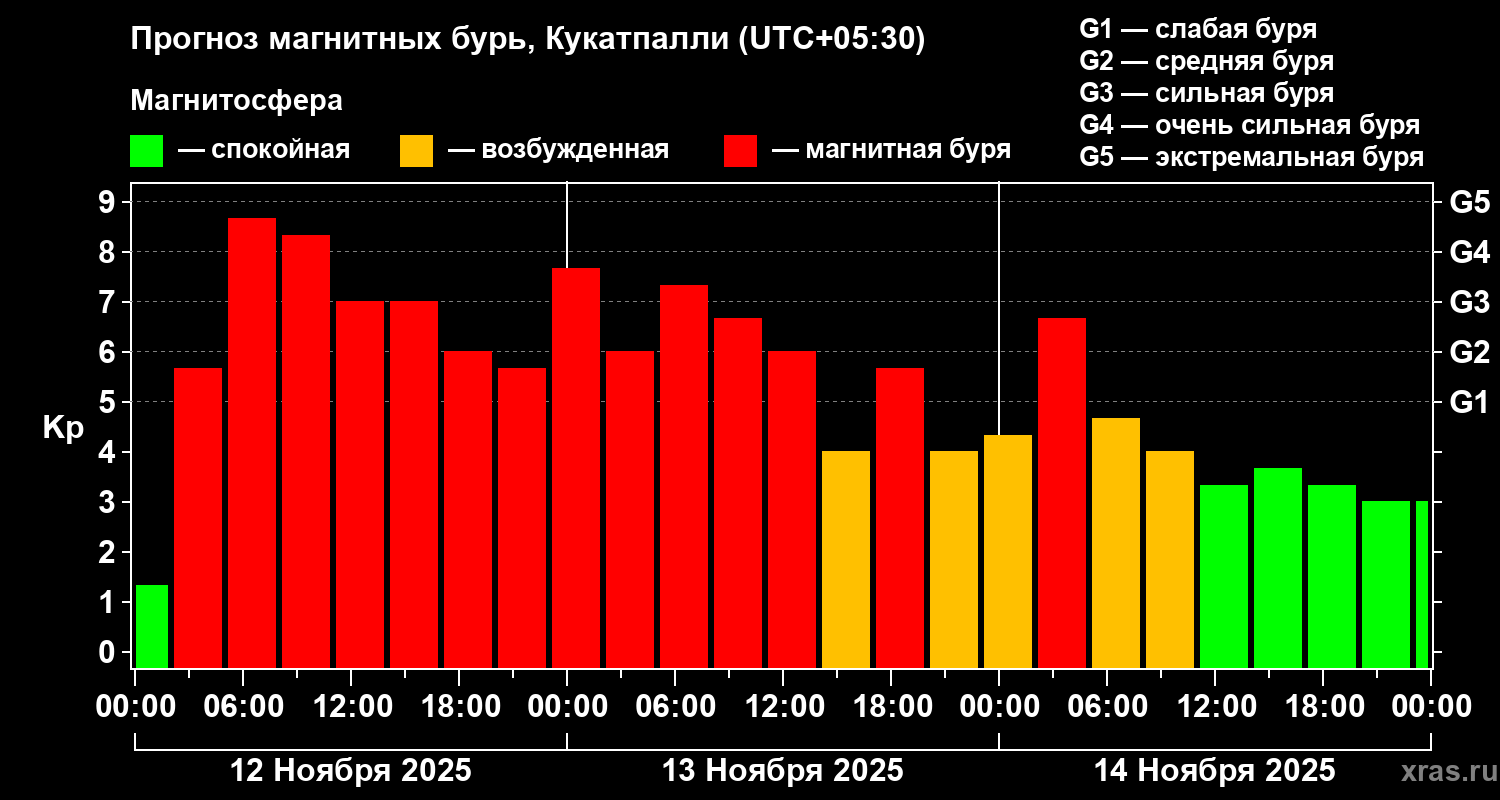 Прогноз магнитных бурь Кукатпалли — 12 ноября 2025 года