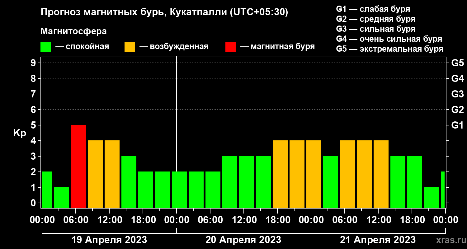 Прогноз магнитных бурь Кукатпалли — 19 апреля 2023 года