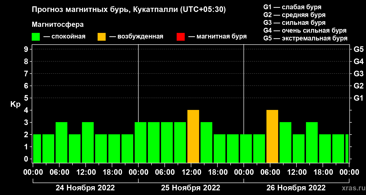 Прогноз магнитных бурь Кукатпалли — 24 ноября 2022 года