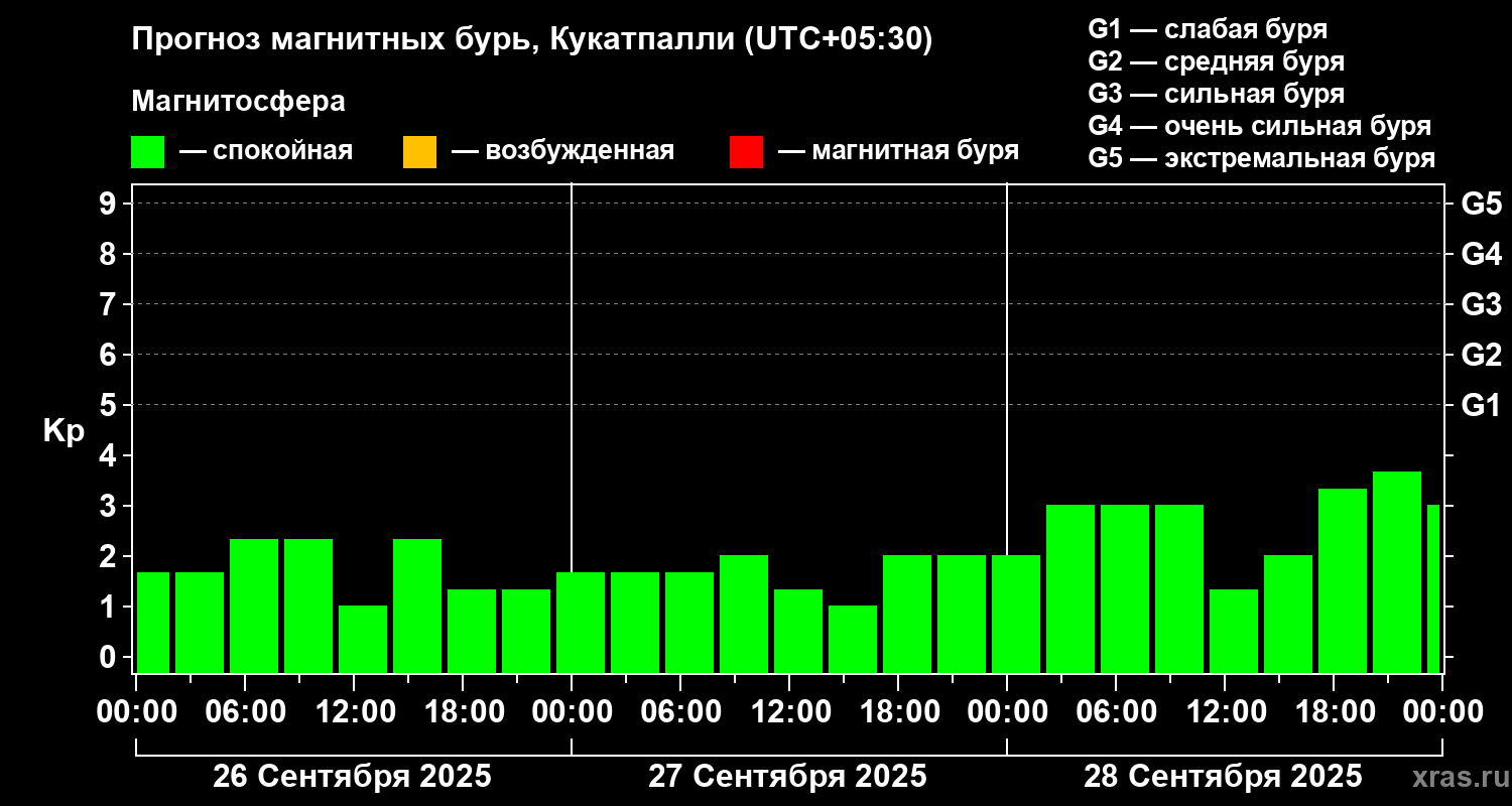 Прогноз магнитных бурь Кукатпалли — 26 сентября 2025 года