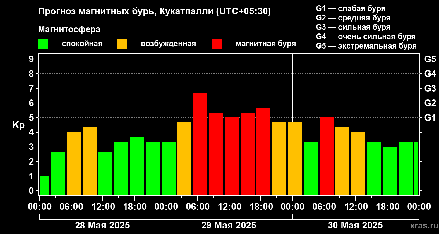 Прогноз магнитных бурь Кукатпалли — 28 мая 2025 года