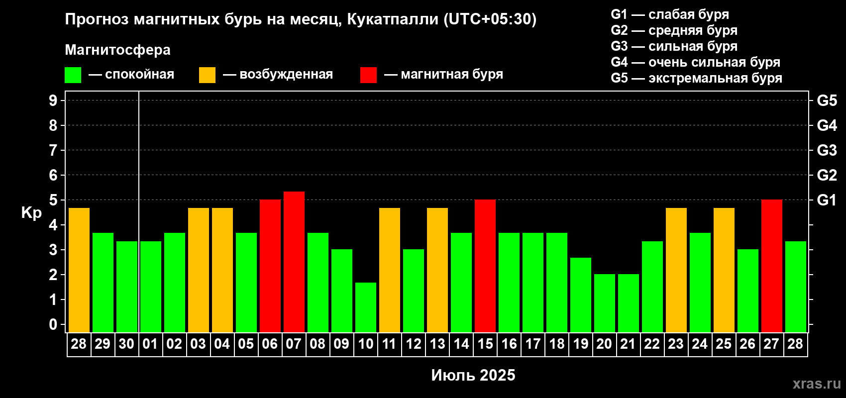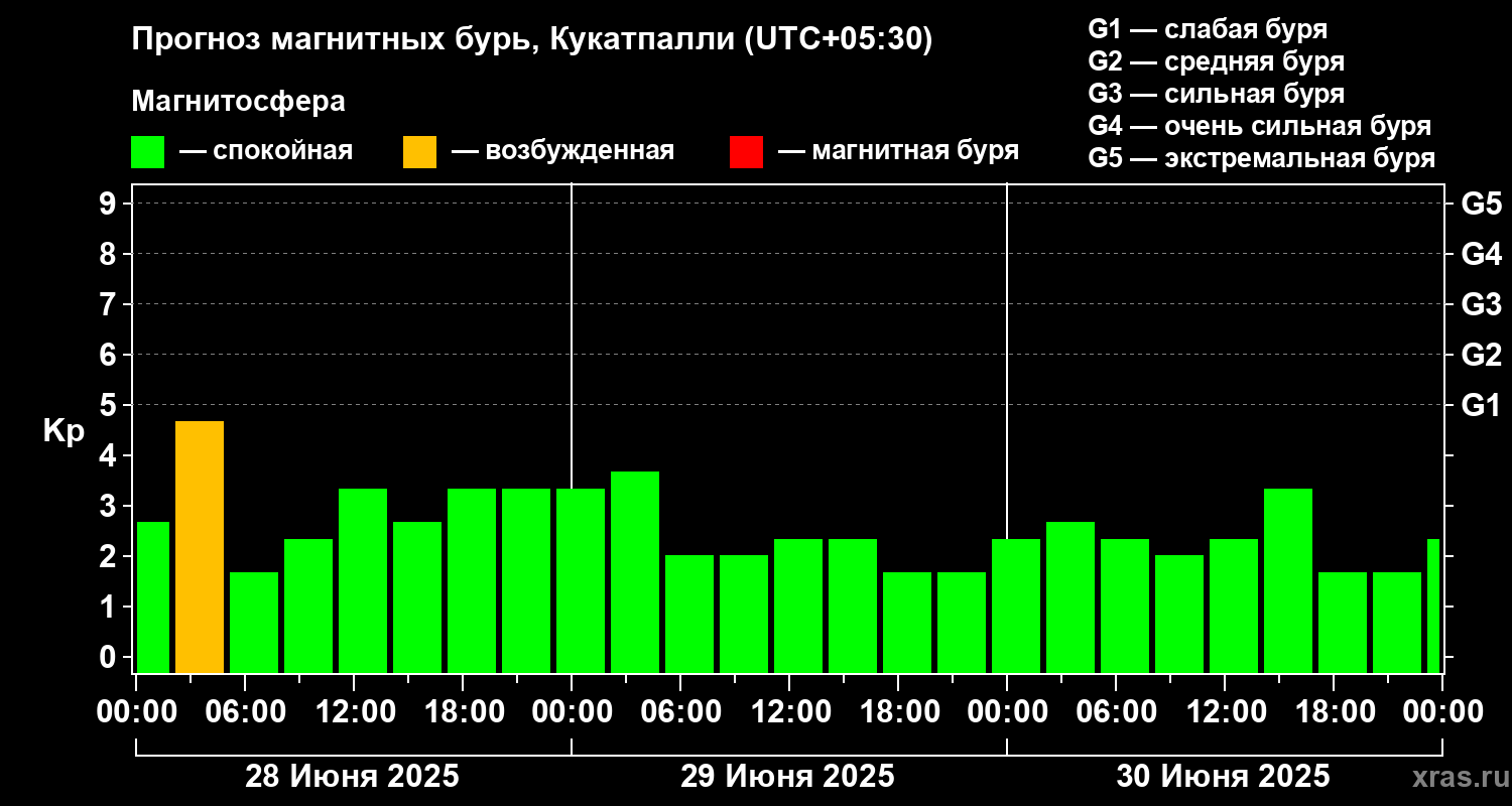 Прогноз магнитных бурь Кукатпалли — 28 июня 2025 года