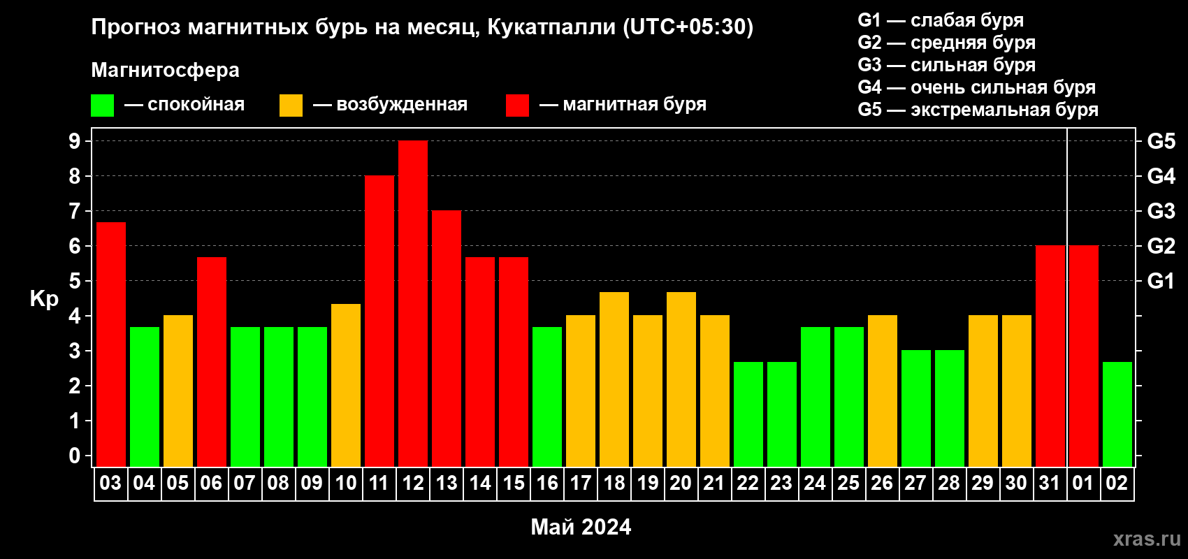 Прогноз магнитных бурь Кукатпалли — 3 мая 2024 года