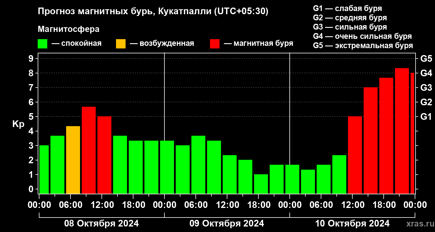 Прогноз магнитных бурь Кукатпалли — 8 октября 2024 года