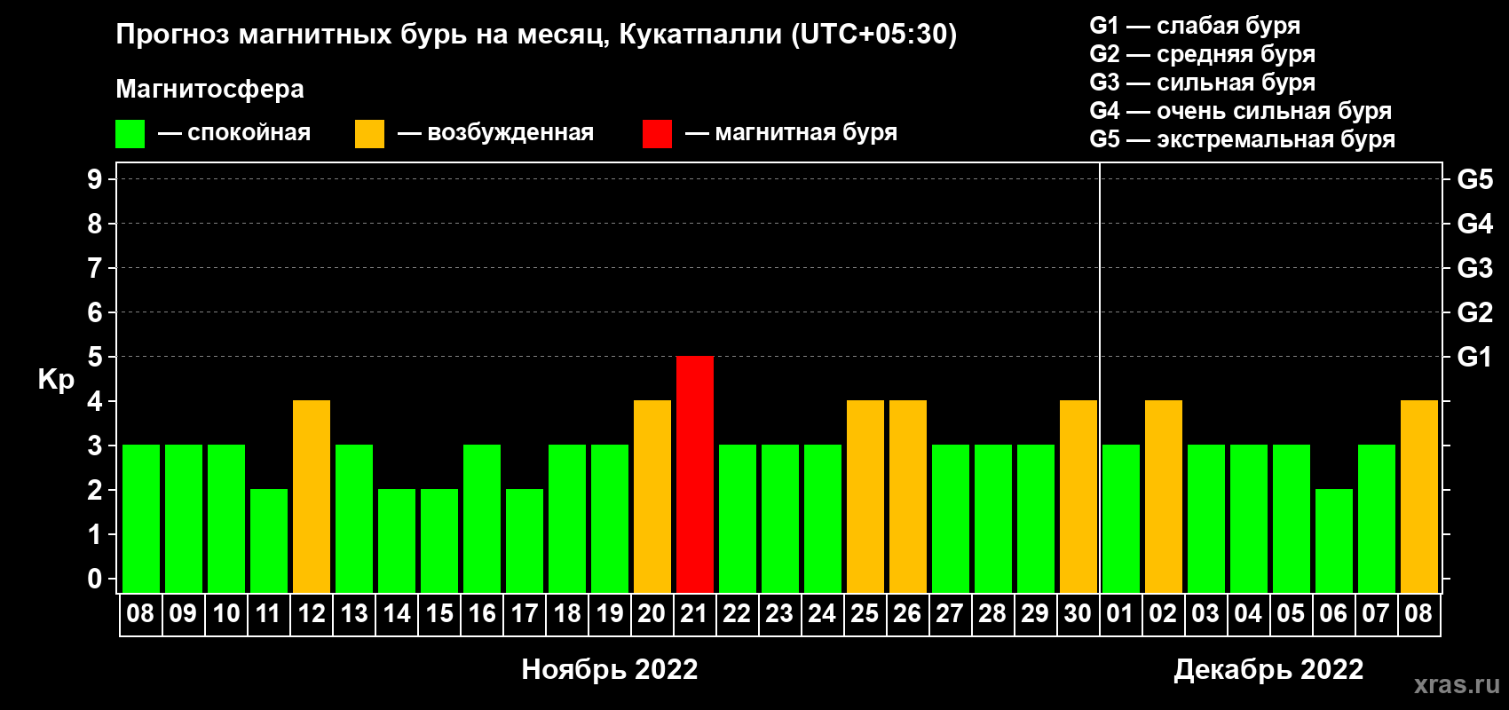 Прогноз магнитных бурь Кукатпалли — 8 ноября 2022 года