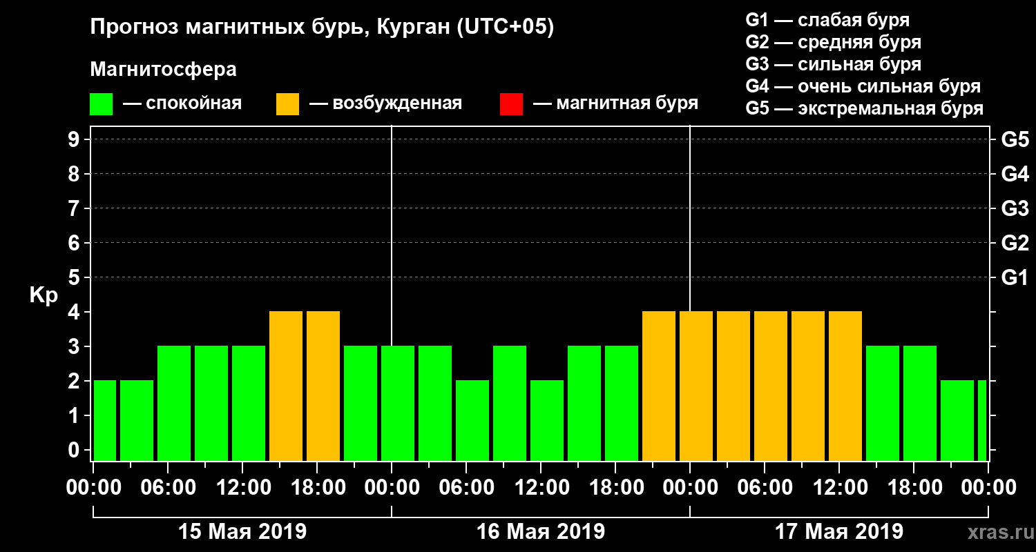 Прогноз магнитных бурь в Кургане на 15 мая 2019 года