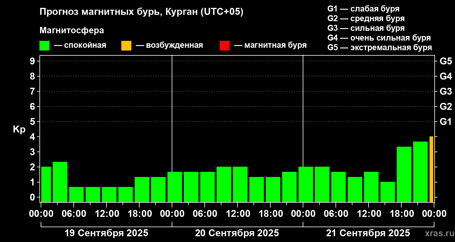Прогноз магнитных бурь в Кургане — 19 сентября 2025 года