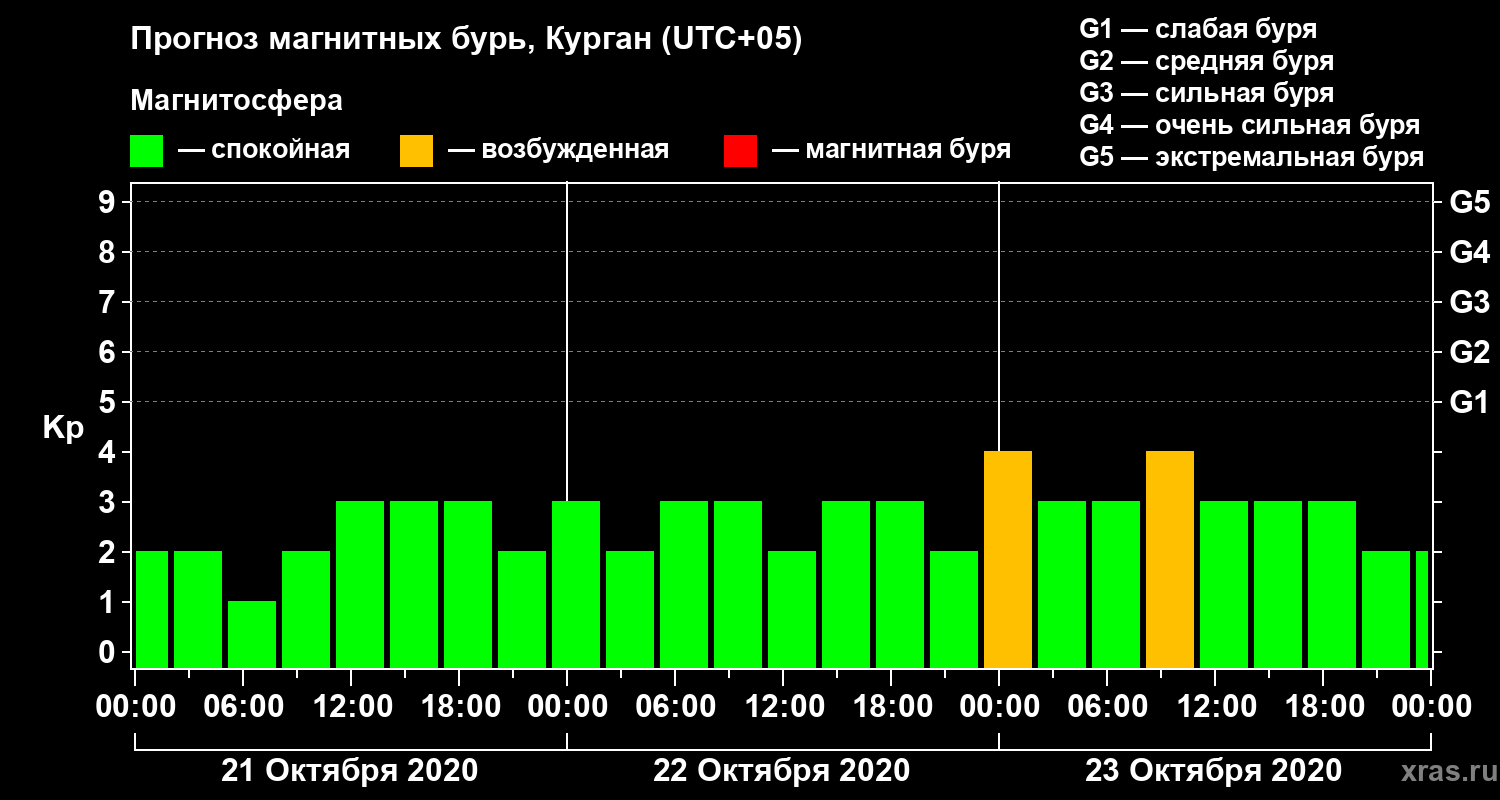 Прогноз магнитных бурь в Кургане — 21 октября 2020 года