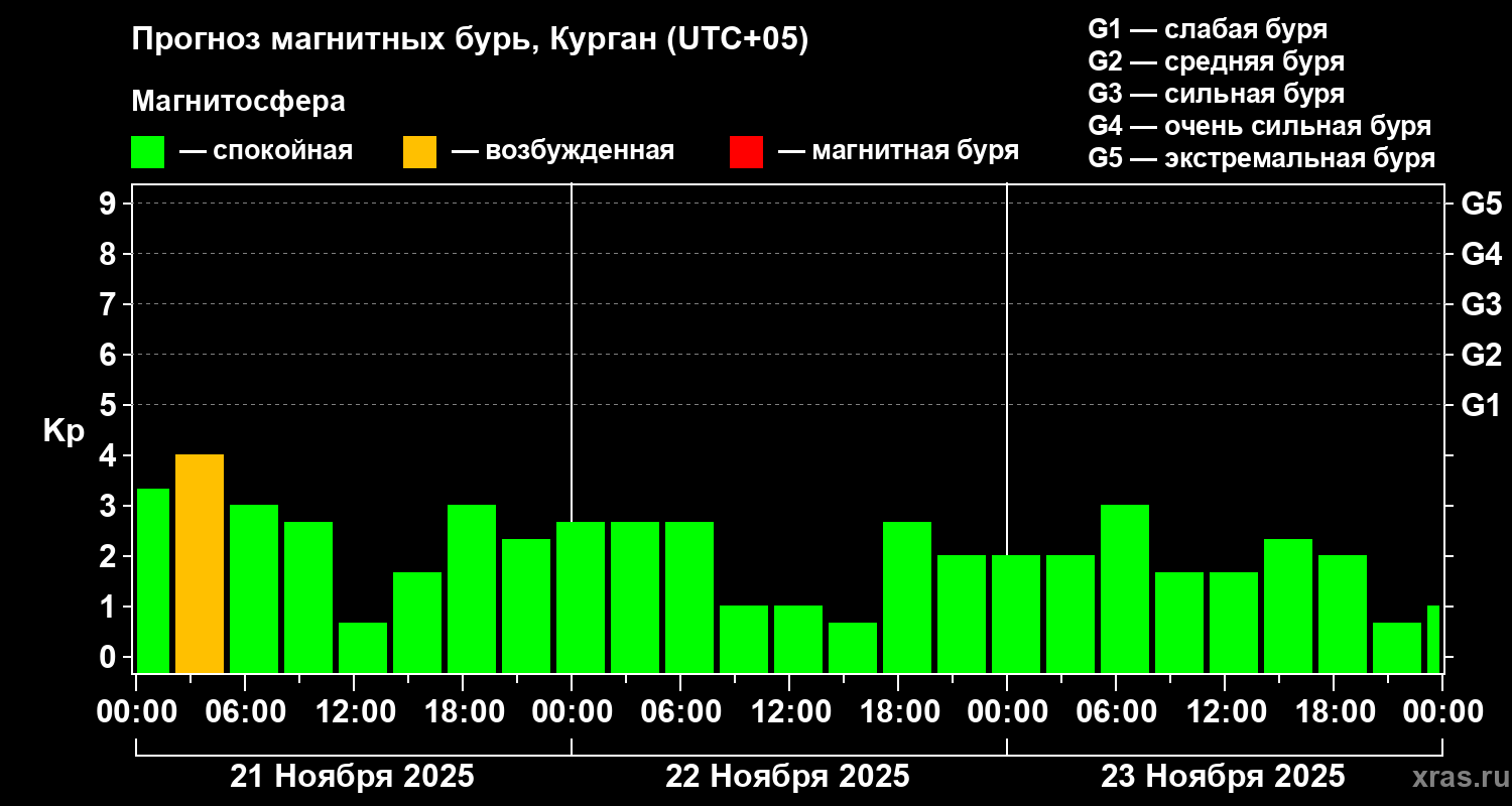 Прогноз магнитных бурь в Кургане — 21 ноября 2025 года