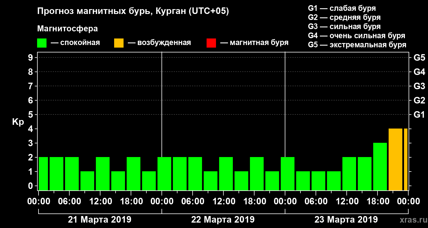 Прогноз магнитных бурь в Кургане — 21 марта 2019 года