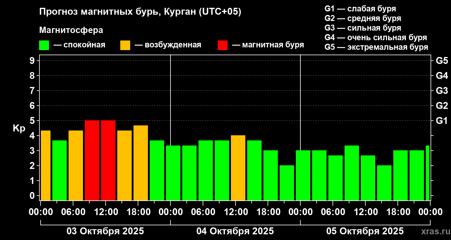 Прогноз магнитных бурь в Кургане — 3 октября 2025 года