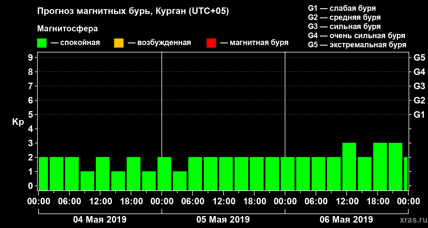 Прогноз магнитных бурь в Кургане — 4 мая 2019 года