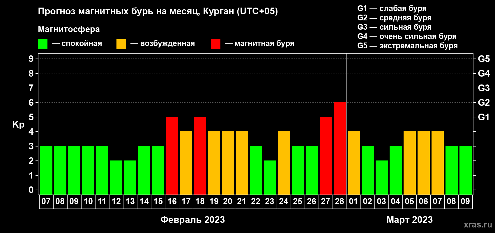 Прогноз магнитных бурь в Кургане — 7 февраля 2023 года