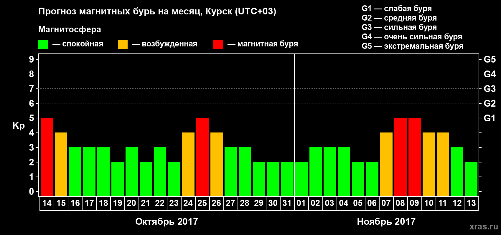 Прогноз магнитных бурь в Курске на 14 октября 2017 года