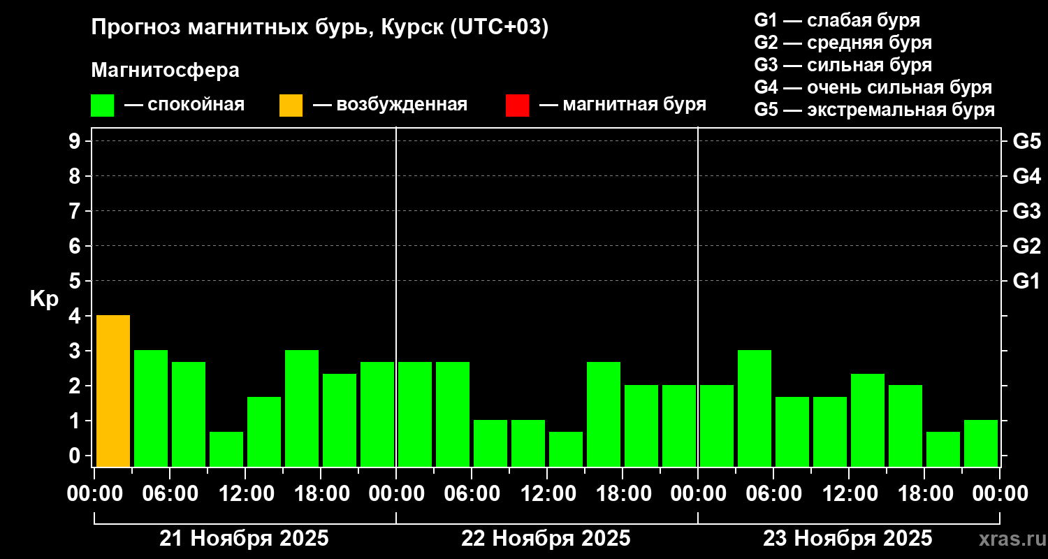 Прогноз магнитных бурь в Курске — 21 ноября 2025 года