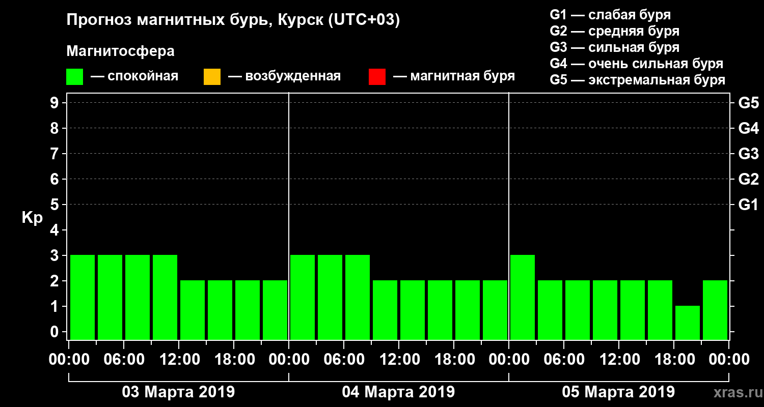 Прогноз магнитных бурь в Курске — 3 марта 2019 года