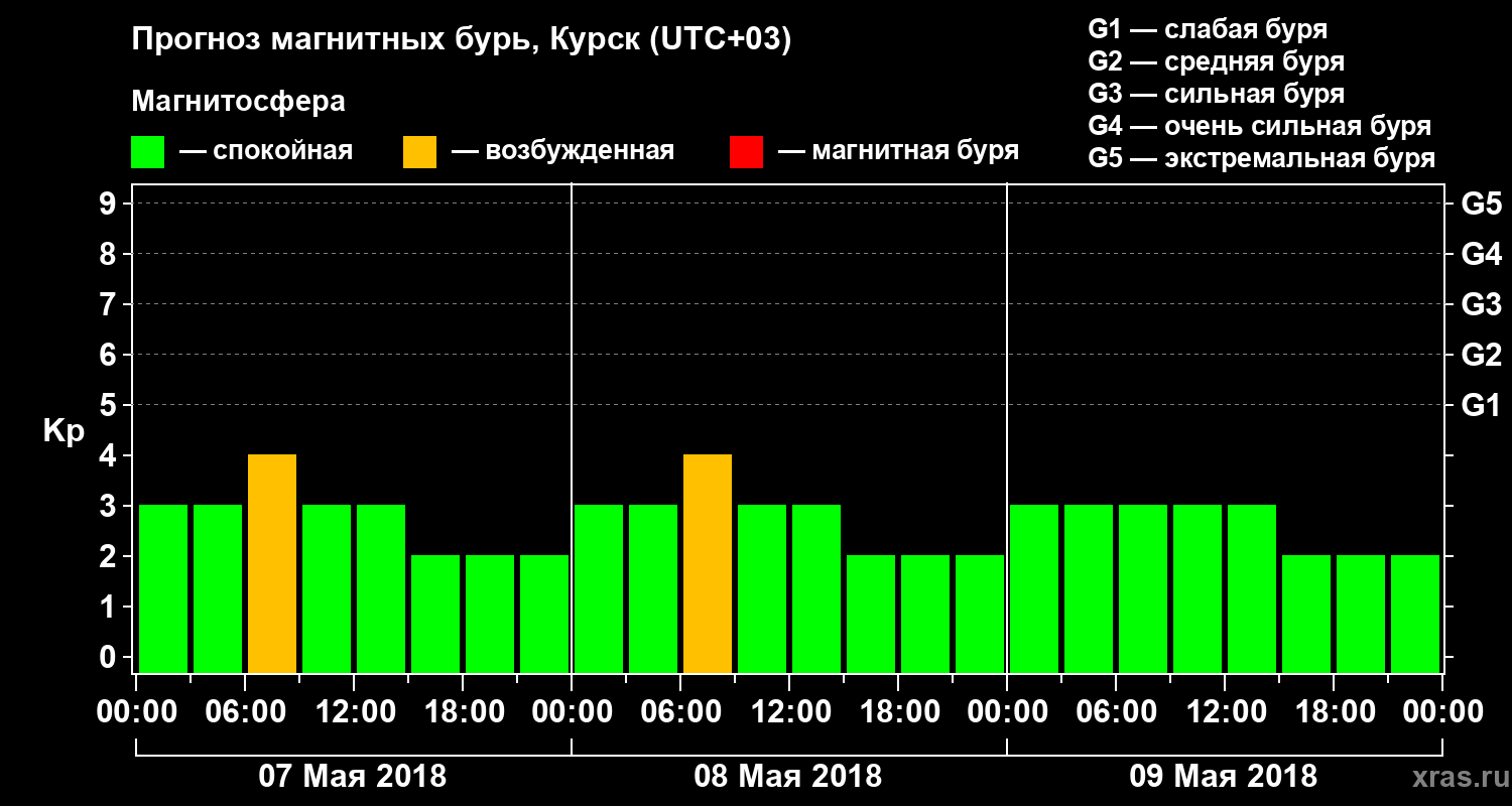 Прогноз магнитных бурь в Курске на 7 мая 2018 года