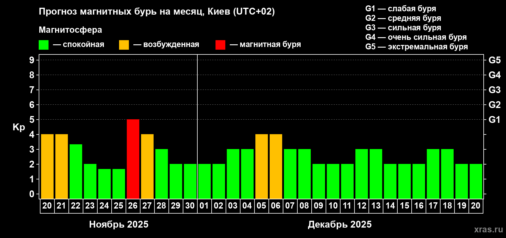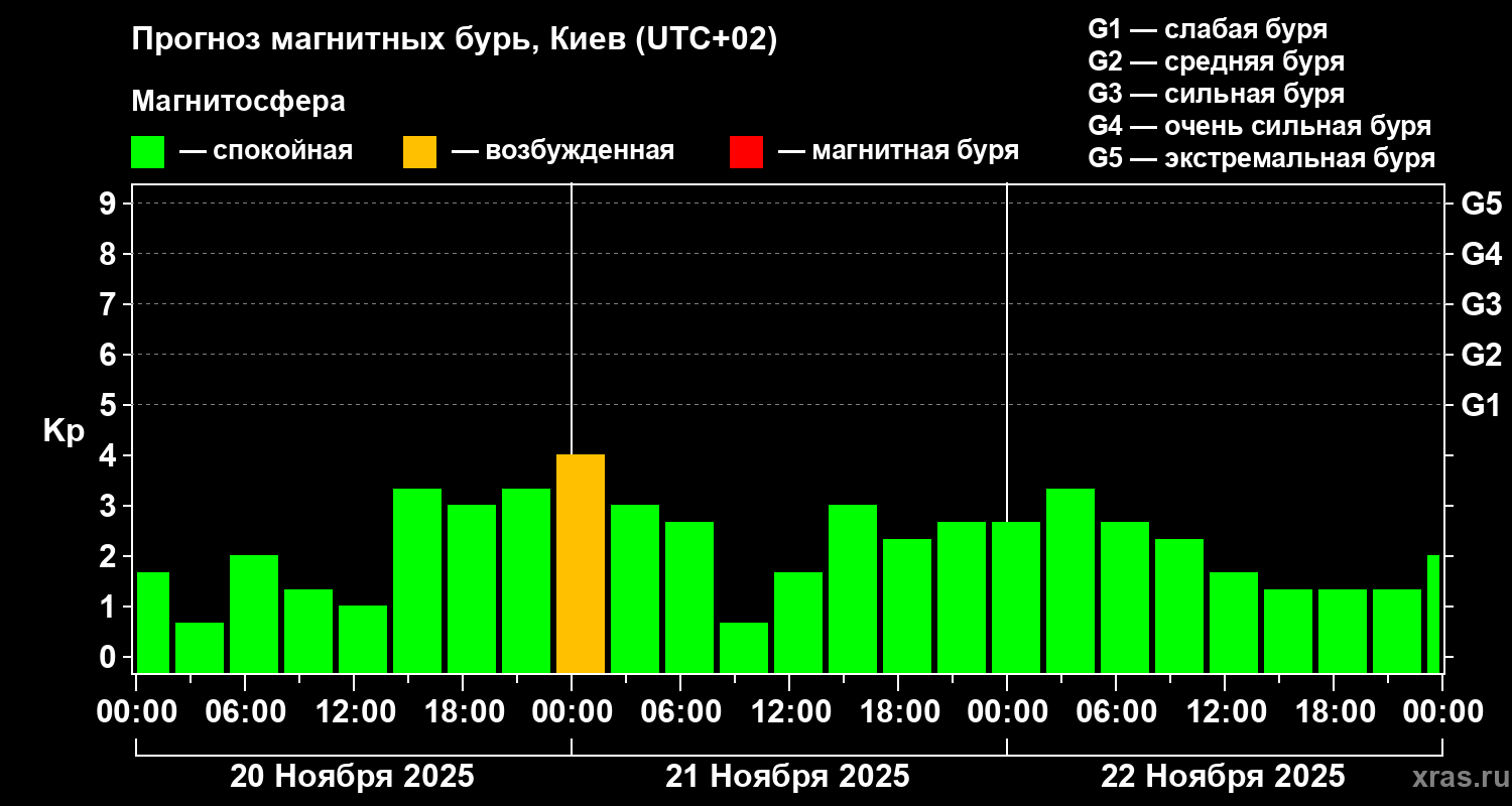 Прогноз магнитных бурь в Киеве — 20 ноября 2025 года