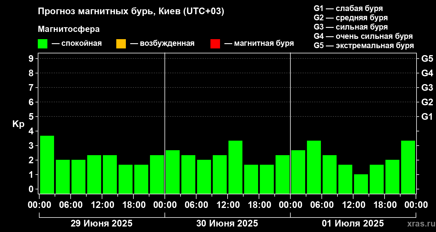 Прогноз магнитных бурь в Киеве — 29 июня 2025 года