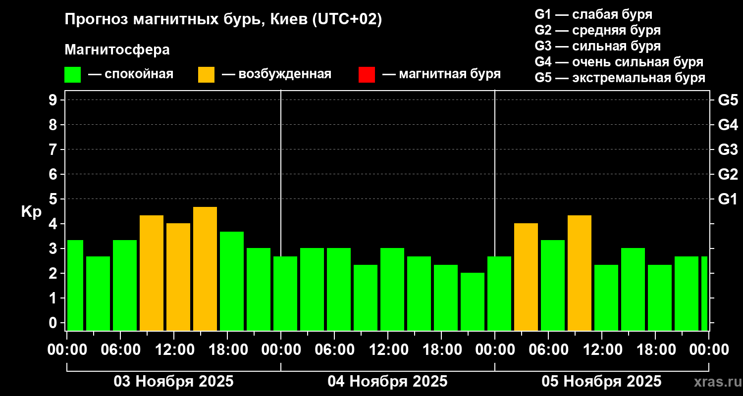Прогноз магнитных бурь в Киеве — 3 ноября 2025 года