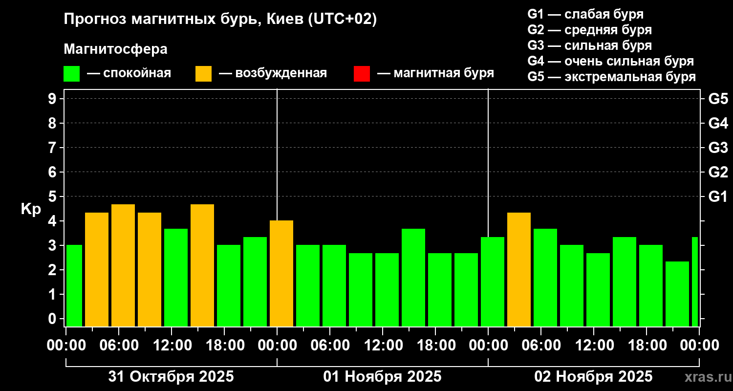 Прогноз магнитных бурь в Киеве — 31 октября 2025 года