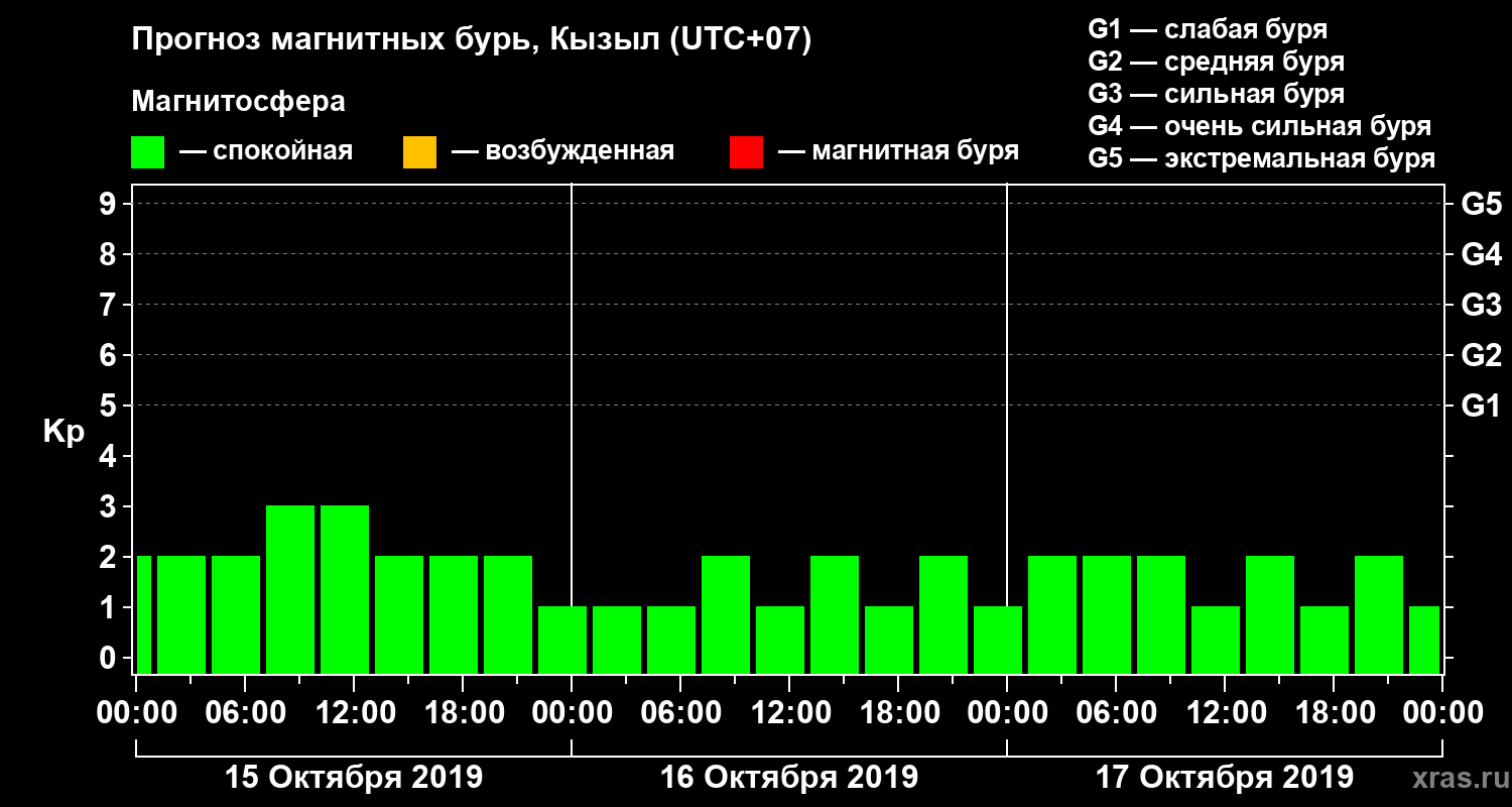Прогноз магнитных бурь в Кызыле — 15 октября 2019 года