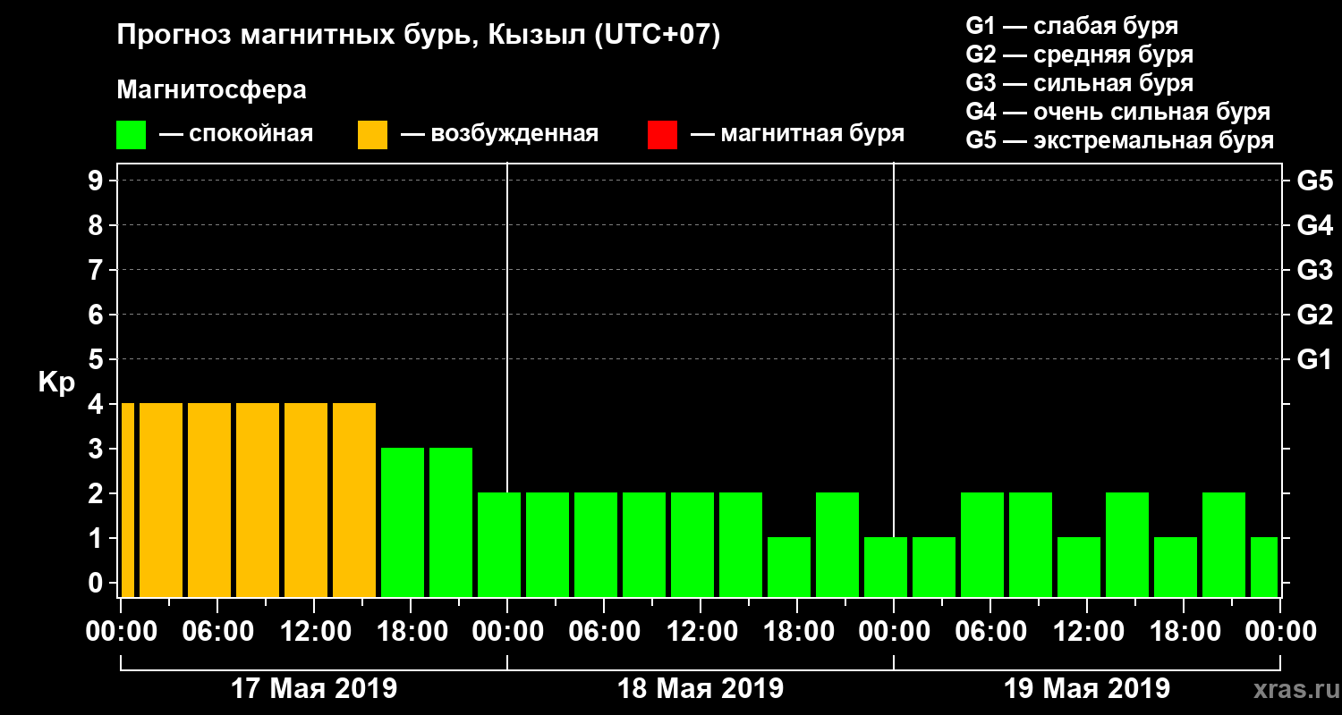 Прогноз магнитных бурь в Кызыле на 17 мая 2019 года