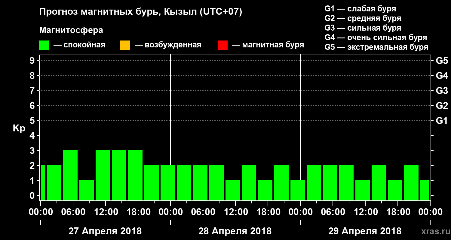 Прогноз магнитных бурь в Кызыле на 27 апреля 2018 года