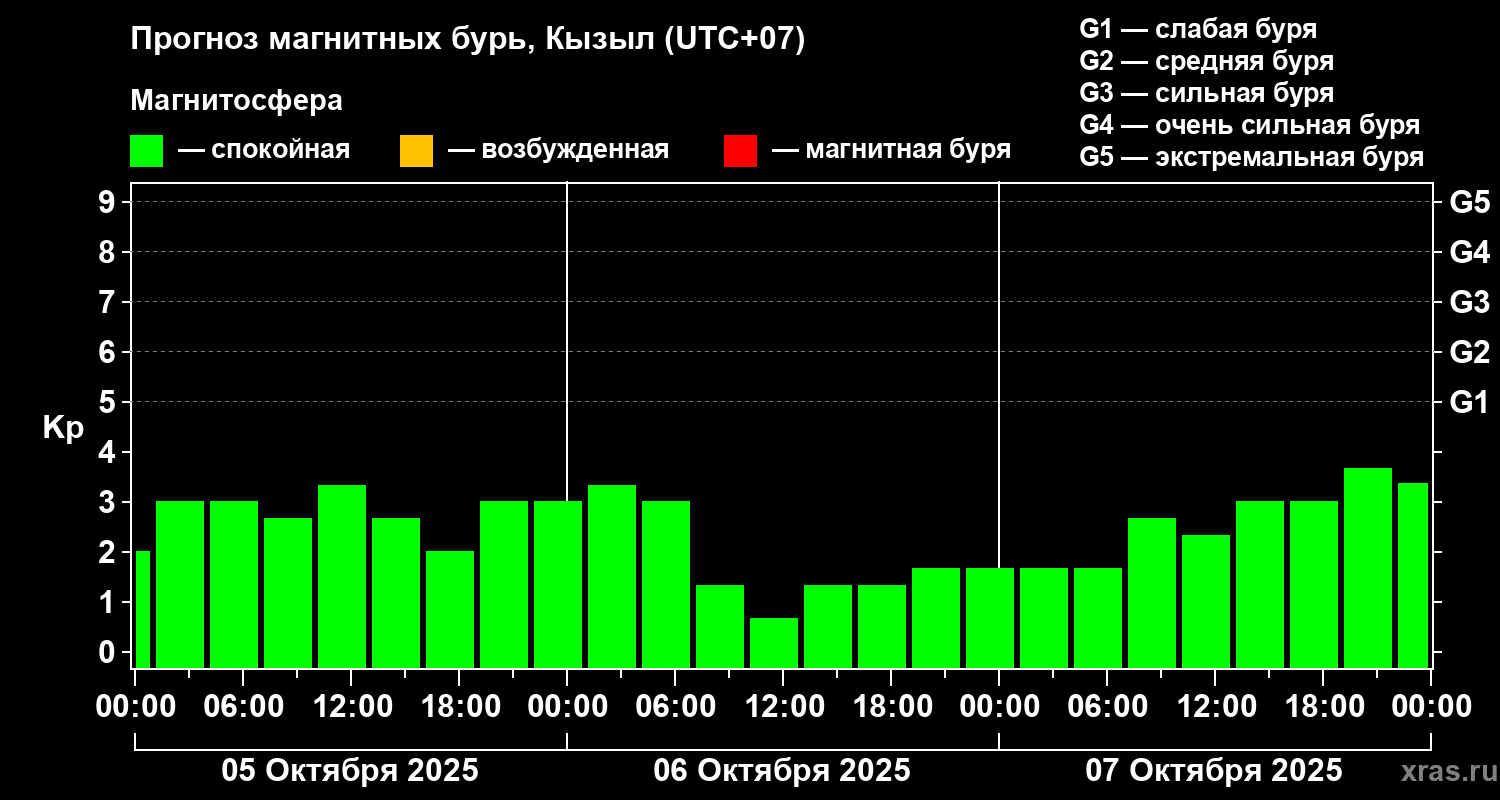 Прогноз магнитных бурь в Кызыле — 5 октября 2025 года
