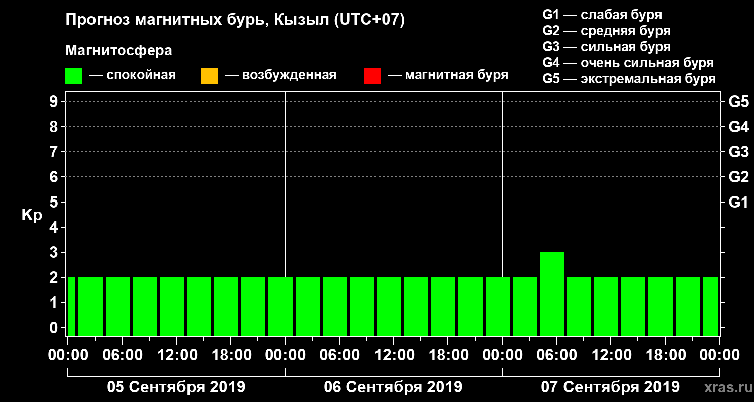 Прогноз магнитных бурь в Кызыле на 5 сентября 2019 года