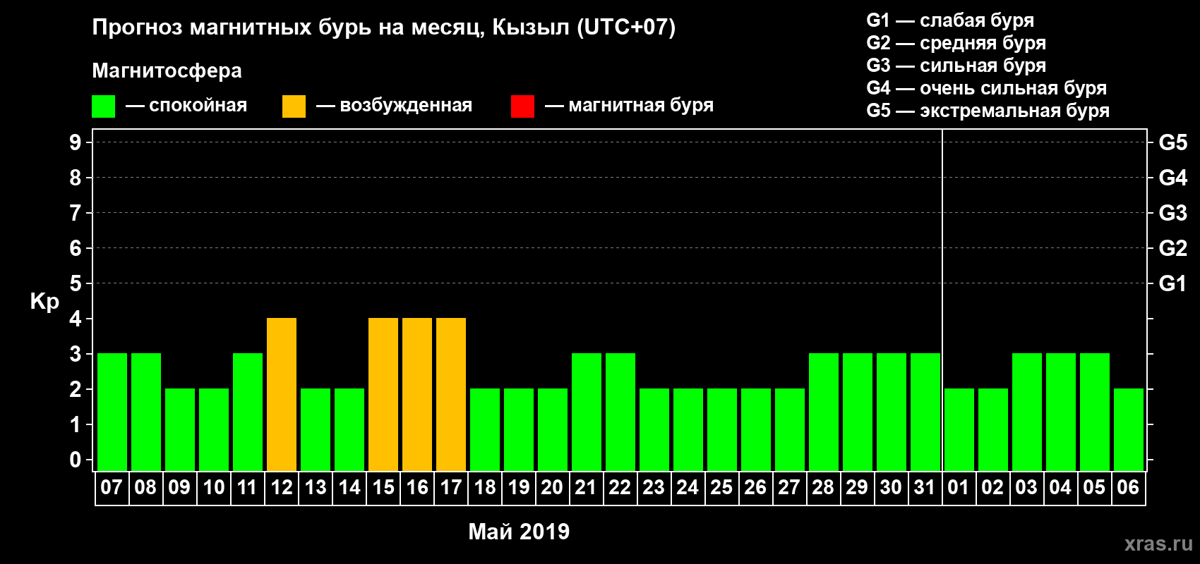 Прогноз магнитных бурь в Кызыле на 7 мая 2019 года