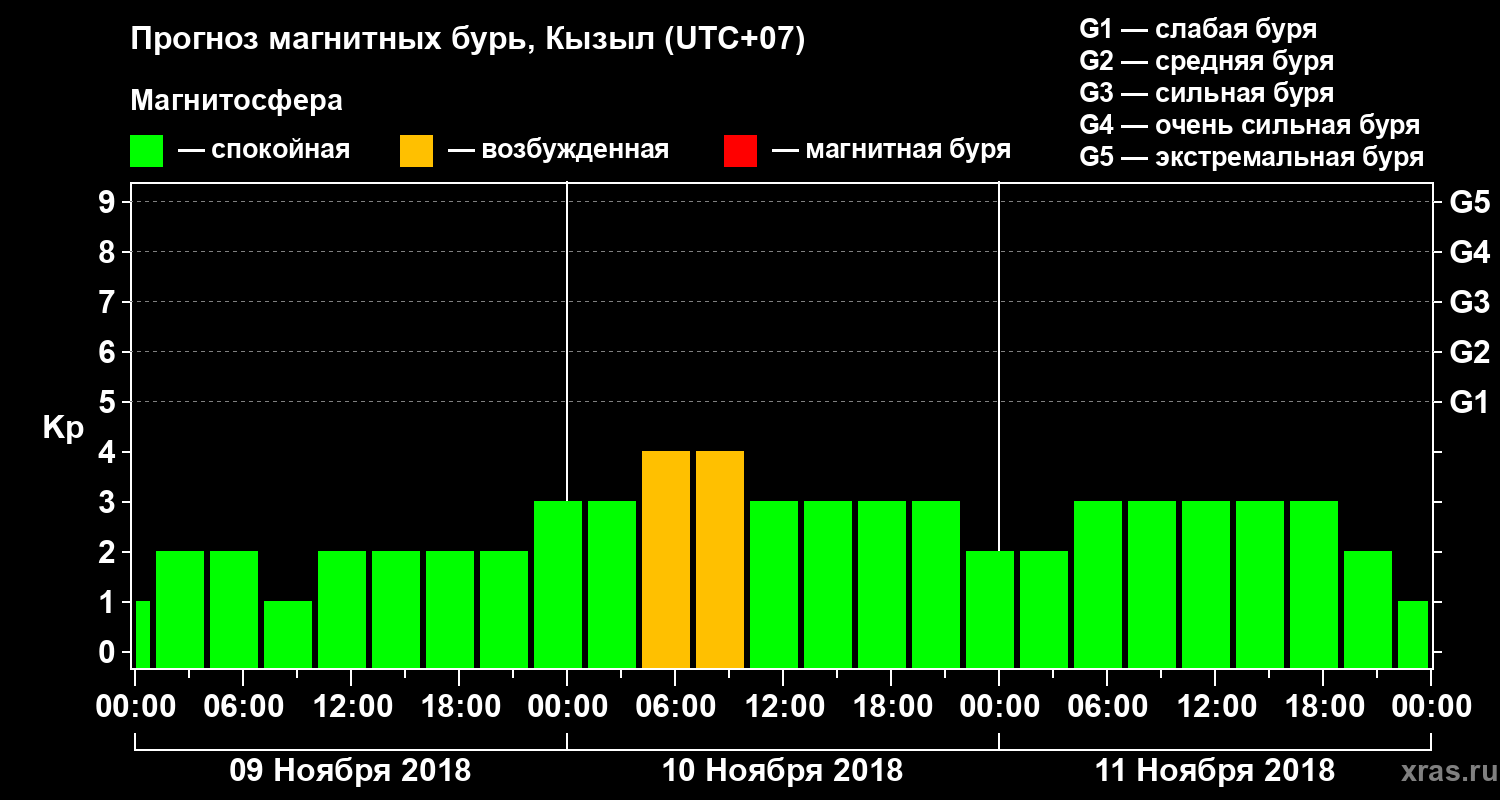 Прогноз магнитных бурь в Кызыле на 9 ноября 2018 года