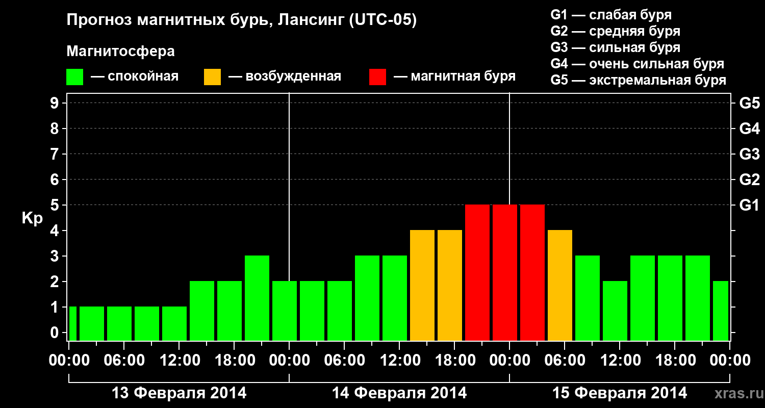 Прогноз магнитных бурь в Лансинге — 13 февраля 2014 года
